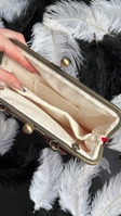 Size: 22 cm x 16 cmClasp size: 20.5 cmMain material: textileDecor: ostrich feather, beads (Czech, Japan), sequins (India, Italy)